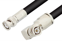 Our male BNC to male BNC right angle cable assembly uses a flexible cable type that is 50 Ohm. Pasternack PE3327LF BNC male to BNC male right angle cable assembly is constructed with RG8 coax and the maximum VSWR is 1.4:1.