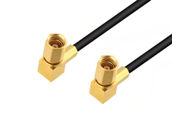 Radio frequency assembly SSMC plug right angle to SSMC plug right angle low loss cable 36 inch length using LMR-100 coax from Pasternack is part of the largest selections of same-day ship coaxial cables for RF, microwave and millimeter wave interconnect solutions. Pasternack coaxial cable assembly products are used in applications requiring high quality such as laboratory RF test and measurement, rugged and designed for defense / military, telecom antenna tower component jumper connection, production environments, low loss, general use, etc. SSMC plug right angle to SSMC plug right angle low loss cable 36 inch length using LMR-100 coax, like our other Pasternack coaxial cable assemblies, will ship the same day and any custom SSMC to SSMC cable assembly orders will ship same day as well.